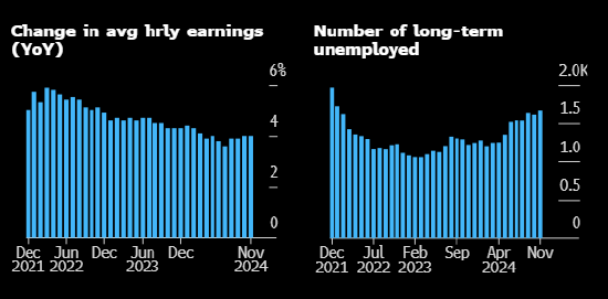 彭博经济学家Anna Wong、Stuart Paul、Eliza Winger、Estelle Ou表示:“11月份非农就业报告并不意味着12月肯定会降息,但也没有排除降息可能性。我们认为12月11日公布的11月份CPI报告将是决定本月降息与否的关键”。