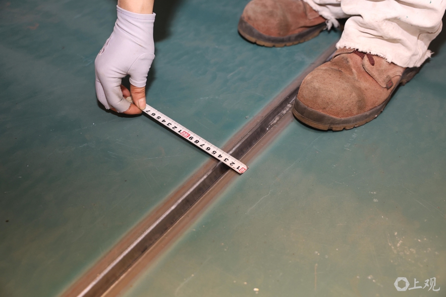 有着12年焊龄的她每天完成8到10组的焊接工作,焊完一组需要半小时,焊接厚度可从11毫米到38毫米,是造船厂一项基础性工作。她说:“看到一堆堆钢板最后变成一艘艘大船,有种耕田时没有的成就感。”