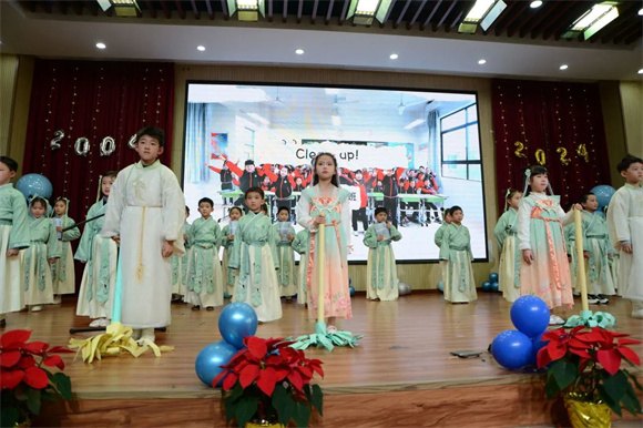 二十年的奋斗历程,每一幕都让人感慨万千。师生共同编排的英语情景剧——《二十载春秋·逐梦新未来》,以其独特的创意和精湛的演技赢得了观众的阵阵掌声。