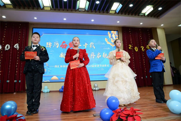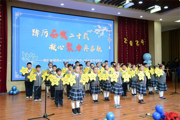 ,岁序更替,华章日新。12月31日下午,“踔厉奋发二十载凝心聚力再启航”南汇外国语小学建校二十周年庆典暨第十七届外语节闭幕式在共川校区梦剧场隆重举行。在这个充满喜悦和自豪的日子里,各界嘉宾与全校师生共同回顾学校20年辉煌历程,展望美好未来。,