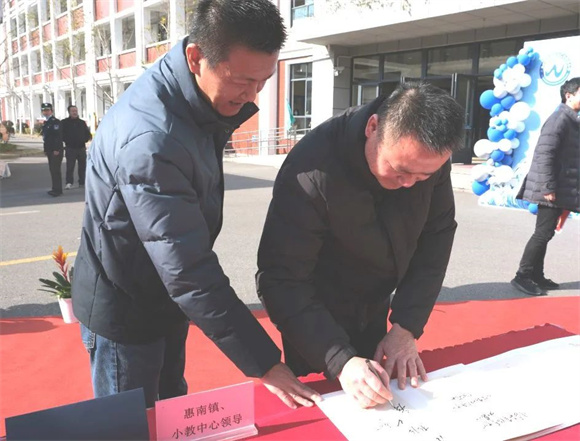 ,莅临庆典活动现场的领导和嘉宾有:惠南镇党委书记江臻宇先生,惠南镇党委副书记、镇长杨扬先生,惠南镇副镇长代敏女士,小学教育指导中心党委书记、主任双慧红女士,惠南镇社建办主任祝培坚先生,小学教学指导中心副主任曹骥先生,小学教学指导中心工会常务副主席倪霜舟女士,文明共建单位的领导以校级家委代表和退休的元老教师们。除演职人员外,其余师生、家长通过东方网直播的方式参与了这场盛大的活动。,