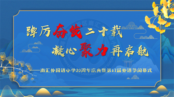 ,岁月不居,时序如流,,廿载躬耕,春华秋实。,启航未来,初心如磐,,精进不辍,再攀高峰!,[浦东]南汇外国语小学:踔厉奋发二十载 凝心聚力再启航——建校20周年庆典暨第十七届外语节闭幕