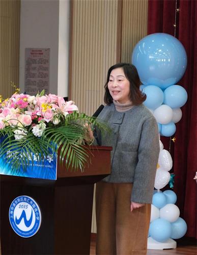 ,随后,小学教育指导中心双慧红女士在大会上致辞,她向学校20年华诞表示热烈的祝贺,并对学校取得的卓越成绩予以高度评价。二十年的砥砺深耕,南外小形成了鲜明的办学特色和优良的校风学风,创造了一个又一个辉煌。同时,双书记希望南外小以建校20周年为新起点,继续团结拼搏、勇攀高峰,铸就新的辉煌。,