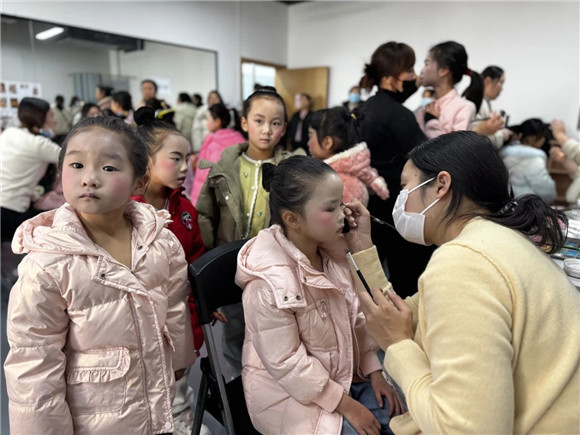 清晨,活动中心的化妆间内热闹非凡。专业的化妆师们正忙碌地为孩子们进行妆容打造,从精致的眼妆到活泼的发型,每一个细节都力求完美。孩子们虽然有些紧张,但更多的是对舞台的向往和对表演的热爱。在化妆师们的巧手下,他们一个个变得光彩照人,仿佛即将踏上星光大道的小明星。